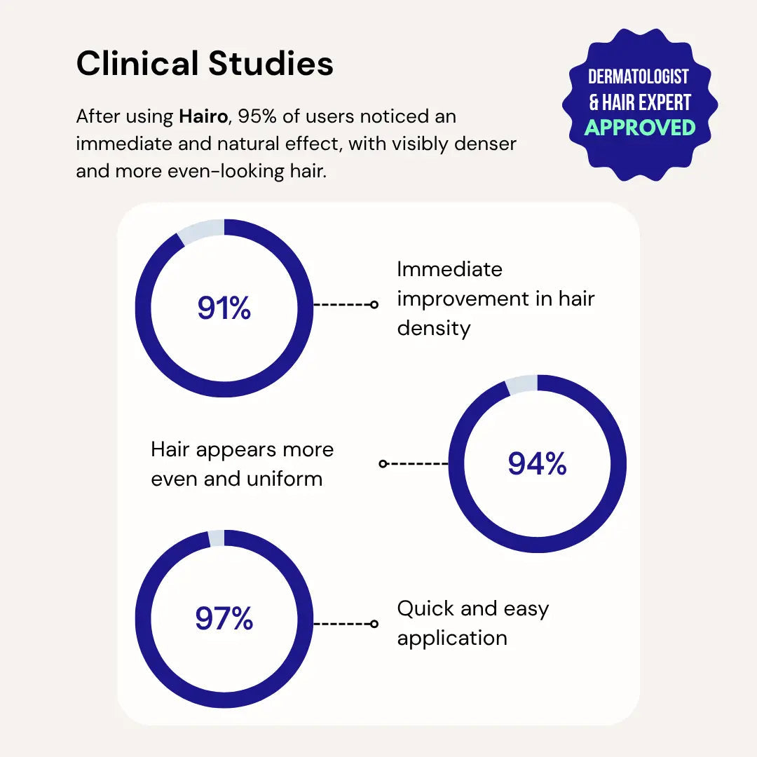Even areas that look completely bare still haveultra-fine or light hairs that are invisible to the eye. HAIRO's pigments lock onto these microscopic hairsto fill gaps and create natural density. This is how you get seamless coverage,even with advanced hair loss.