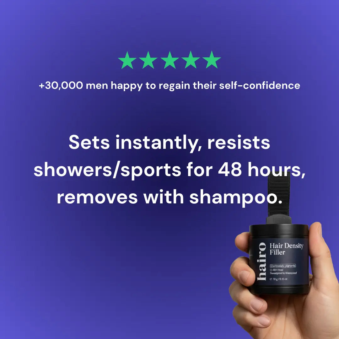 Even areas that look completely bare still haveultra-fine or light hairs that are invisible to the eye. HAIRO's pigments lock onto these microscopic hairsto fill gaps and create natural density. This is how you get seamless coverage,even with advanced hair loss.